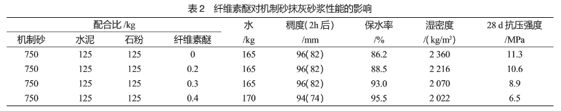 從表2可以看出隨羥丙基甲基纖維素?fù)搅康脑黾釉趽剿炕静蛔兊臈l件下砂漿稠度(包括靜置2h后)基本不變但保水率明顯提高濕密度下降28d抗壓強(qiáng)度明顯下降。